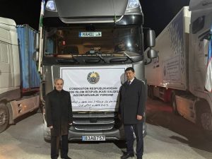 Özbekistan Hükümeti, İran halkına yönelik insani yardımı Türkmenistan üzerinden transit geçen birkaç tır ile bölgeye ulaştırdı. Gelişme, Özbekistan Dışişleri Bakanlığı basın servisi tarafından duyuruldu.