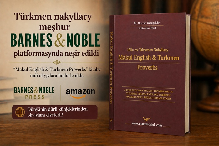 Türkmen dilinin gelişimine katkı sağlamak ve farklı kültürler arasında köprü kurmak amacıyla hazırlanan “Makul Language Series” projesinin üçüncü kitabı — “Makul English & Turkmen Proverbs” — artık ABD’nin en büyük kitap platformlarından biri olan Barnes & Noble aracılığıyla okuyuculara sunuldu.
