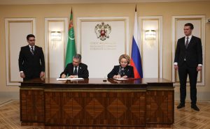 Valentina Matvienko ve Gurbanguli Berdimuhamedov, Federasyon Konseyi ile Türkmenistan Ulusal Konseyi Halk Maslahatı arasında Parlamentolar Arası İşbirliği Komisyonu’nun kurulmasına ilişkin bir Anlaşma imzaladılar.