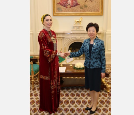 Gurbanguly Berdimuhamedow adyndaky Howandarlyga mätäç çagalara hemaýat bermek boýunça haýyr-sahawat gaznasynyň bejeriş işleri boýunça wise-prezidenti Oguljahan Atabaýewa «Parahatçylyk we ynanyşmak ýyly: çagalaryň hatyrasyna halkara işiniň ösüşi» atly halkara maslahata gatnaşmak üçin ýurdumyza sapar bilen gelen Hytaý Halk Respublikasynyň Sun Sinlin adyndaky gaznasynyň başlygynyň orunbasary hanym Şen Beili bilen duşuşdy.