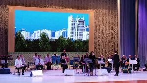 Ýurdumyzyň medeniýet we sungat ussatlaryndan Türkmenistanyň halk artisti Atajan Berdiýew ýurdumyzyň döwlet tans toparynyň tansçylary bilen bilelikde Gara Seýitliýewiň sözlerine, Çary Nurymowyň sazyna döredilen «Meleguş» aýdymy ýerine ýetirdi. Ýaş aýdymçy Döwran Annamämmedowyň dabara ýerine ýetiren türk aýdymlaryndan çemeni bolsa oňa gatnaşýan myhmanlaryň şaltlygyny artdyrdy.