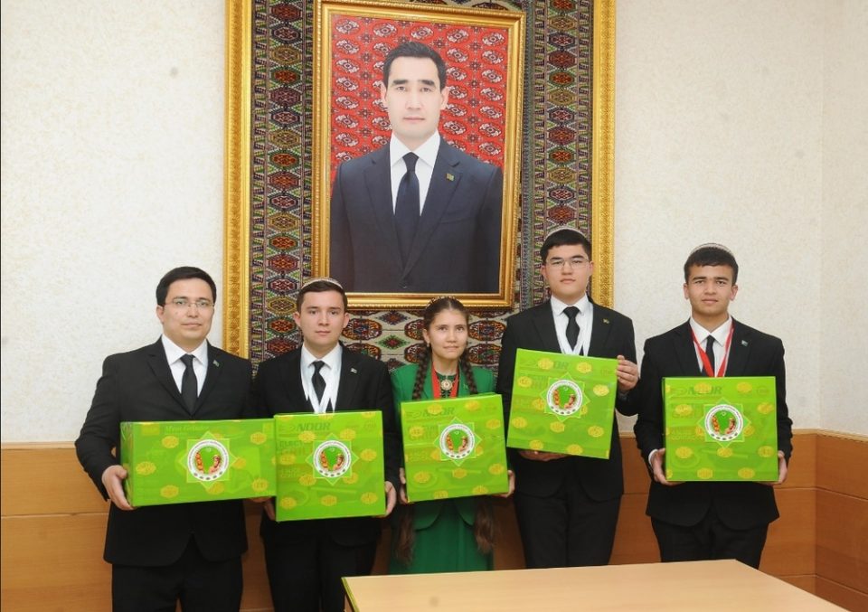 Türkmenistanyň Bilim ministri Türkmenistanyň Magtymguly adyndaky Ýaşlar guramasynyň adyndan olimpiadanyň ýeňijilerine gymmat bahaly sowgatlary gowşurdy.