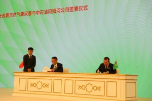 Resminama «Türkmengaz» döwlet konserniniň başlygy Maksat Babaýew we «CNPC Amudarya Petroleum Company Ltd» kompaniýasynyň başlygy Du Ýumin tarapyndan gol çekildi.