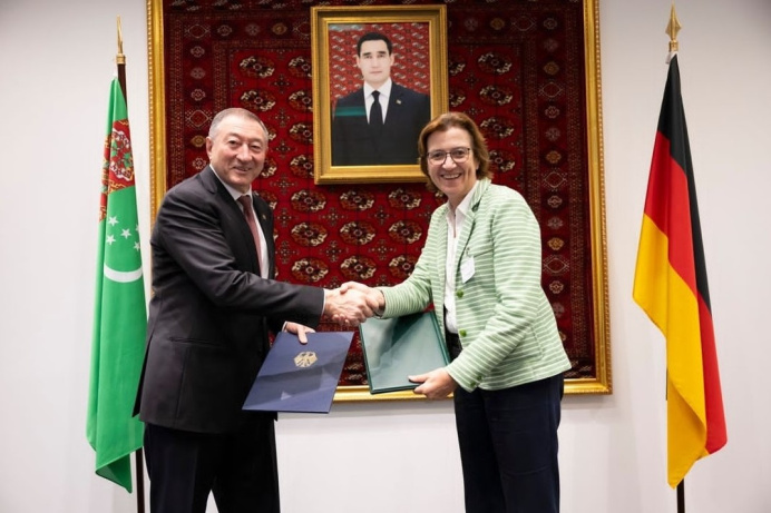 Türkmenistanyň Maliýe we Ykdysadyýet ministrligi bilen Germaniýanyň Federal Ykdysadyýet we howany goramak ministrliginiň arasynda bilelikdäki beýannama gol çekildi. Iki ýurduň bölümleriniň ýolbaşçylary diplomatik kanallar arkaly gol çekdi diýip, Türkmenistanyň Germaniýadaky ilçihanasy habar berýär.