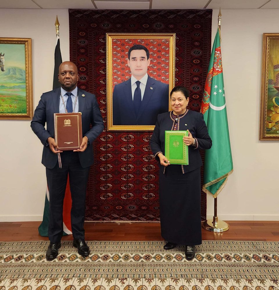 Türkmenistan bilen Keniýa Respublikasynyň arasynda diplomatik gatnaşyklaryň ýola goýulmagyna bagyşlanyp, bilelikdäki beýannama gol çekmek dabarasy geçirildi. Bu barada Türkmenistanyň BMG-niň ýanyndaky hemişelik wekilligi habar berýär.