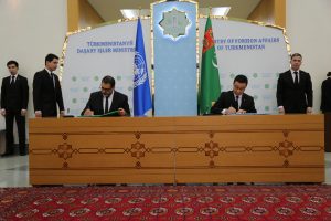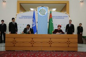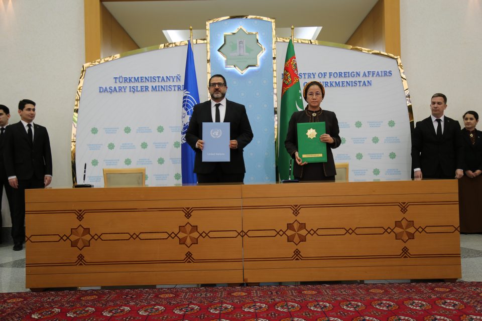 Türkmenistanyň Daşary işler ministrliginiň binasynda geçirilen dabarada Türkmenistanyň ministrlikleri, pudak edaralary we jemgyýetçilik guramalary bilen BMG-niň Ösüş Maksatnamasy, ÝUNISEF hem-de BMG-niň Ilat gaznasynyň (ÝUNFPA) degişli resminamalara gol çekildi.