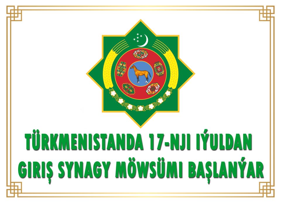 — okuwa kabul etmek boýunça giriş synaglaryny welaýat merkezlerinde we Aşgabat şäherinde geçirmek tabşyryldy.