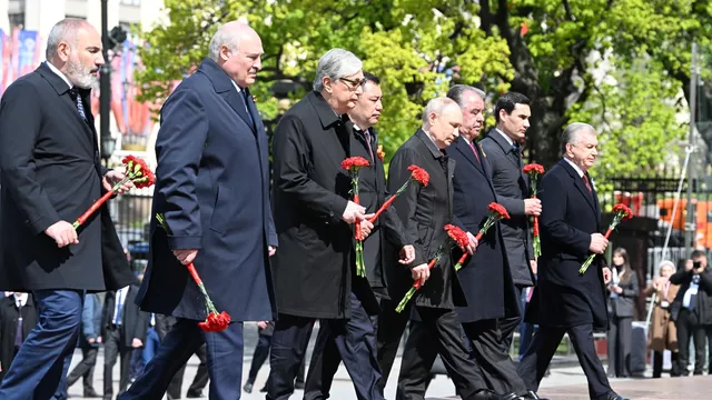 Bu dabaralara Russiýanyň Prezidenti Wladimir Putin bilen bir hatarda Gyrgyz Respublikasynyň Prezidenti Sadyr Žaparow, Özbegistan Respublikasynyň Prezidenti Şawkat Mirziýoýew, Täjigistan Respublikasynyň Prezidenti Emomali Rahmon, Gazagystanyň Prezidenti Kasym-Žomart Tokaýew, Belarusyň Prezidenti Aleksandr Lukaşenko we Ermenistanyň Premýer-ministri Nikol Paşinýan gatnaşdy.