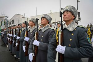 Iki ýurduň döwlet Baýdaklary bilen bezelen Astana şäheriniň halkara howa menzilinde Türkmenistanyň Prezidentiniň döwlet sapary üçin hormat garawuly nyzama duruzyldy.
