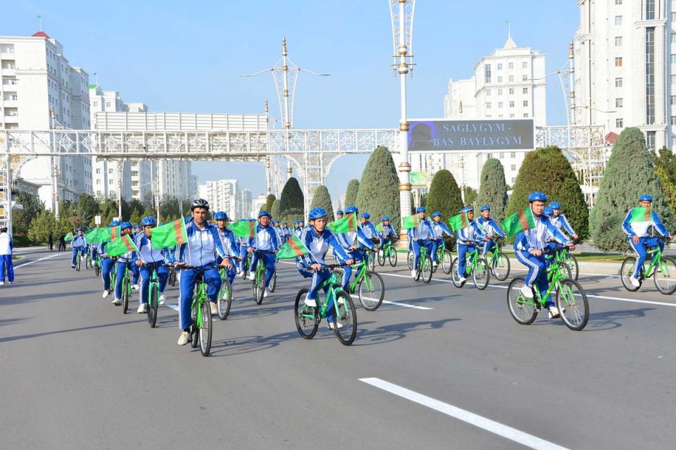 Şu gün paýtagtymyzda hormatly Prezidentimiz Serdar Berdimuhamedowyň gatnaşmagynda Bütindünýä saglyk güni mynasybetli köpçülikleýin welosipedli ýörişi geçirildi.