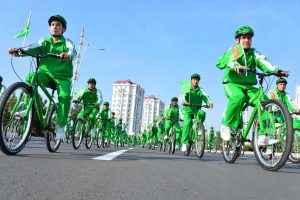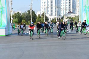 Türkmenistanyň Prezidenti köpçülikleýin welosipedli ýörişe gatnaşdy