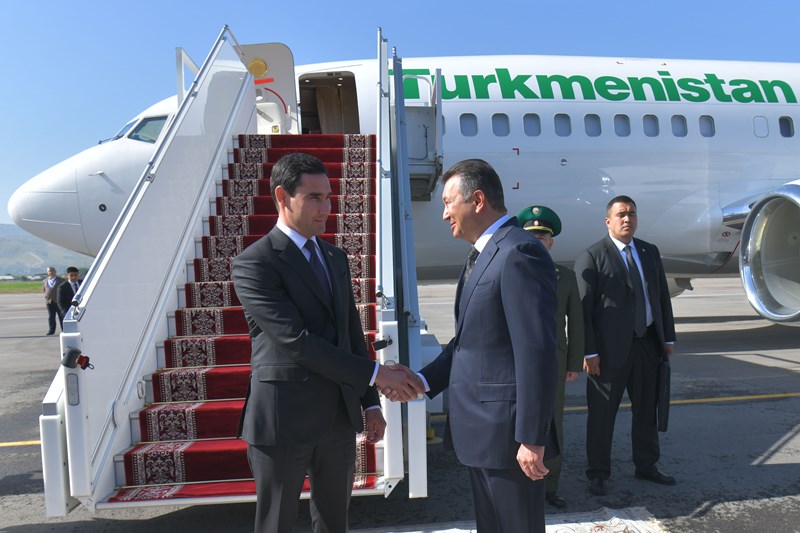 Türkmenistanyň Prezidentini Duşanbe şäheriniň halkara howa menzilinde Täjigistan Respublikasynyň Premýer-ministri Kohir Rasulzoda we beýleki resmi adamlar garşylady.