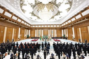 Harby orkestriň ýerine ýetirmeginde iki ýurduň döwlet senalary ýaňlandy. Hormat garawuly döwlet Baştutanlarynyň öňünden dabara bilen geçdi.