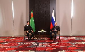 Şanhaý Hyzmatdaşlyk Guramasyna agza döwletleriň Baştutanlarynyň Geňeşine hormatly myhman hökmünde gatnaşmak maksady bilen, Özbegistanyň Samarkant şäherine amala aşyrýan iş saparynyň çäklerinde Türkmenistanyň Prezidenti Serdar Berdimuhamedow Russiýa Federasiýasynyň Prezidenti Wladimir Putin bilen duşuşdy.