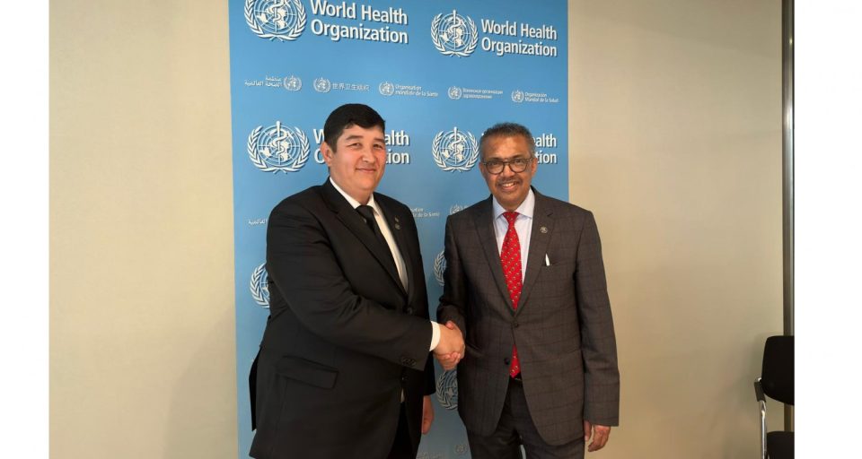 Ženewada geçirilýän Bütündünýä saglygy goraýyş assambleýasynyň 76-njy mejlisine gatnaşmak üçin iş saparynyň çäklerinde ýurdumyzyň saglygy goraýyş we derman senagaty ministri A.Germanowyň ýolbaşçylygyndaky Türkmenistanyň wekiliýeti Bütündünýä Saglygy Goraýyş Guramasynyň (BSGG) Baş direktory Tedros Adan Gebreýesus bilen duşuşyk geçirdi. Onuň dowamynda Türkmenistanyň bu gurama bilen hyzmatdaşlygynyň meseleleriniň giň toplumy ara alnyp maslahatlaşyldy.