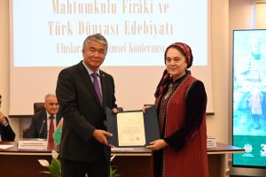 Türki medeniýetiň halkara guramasy (TÜRKSOÝ) tarapyndan gündogaryň beýik akyldary we şahyry Magtymguly Pyragynyň doglan gününiň 300 ýyllygy mynasybetli “Magtymguly Pyragy we türk dünýäsiniň edebiýaty” atly halkara ylmy maslahat gurnady.