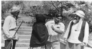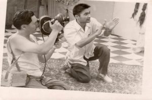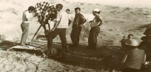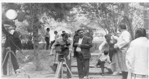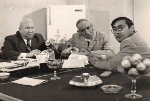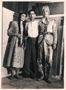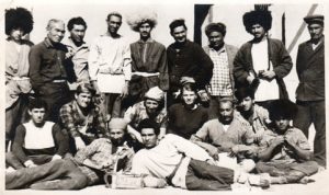 “Keçpelek”filminiň iş pursady. Çepden dik duran Ö. Kulyýew.