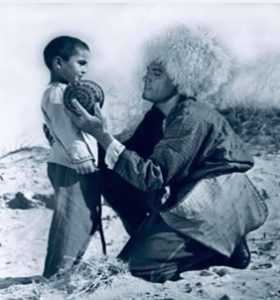 “Keçpelek”filminden pursat. Çepden saga Begli – Ahmet Kulyýew we Berdimyrat – Türkmenistanyň halk artisti Baba Annanow.