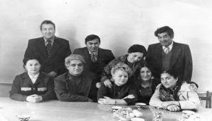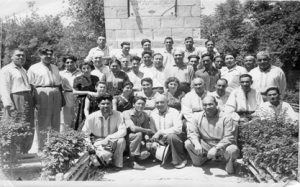 Mollanepes tearynyň 1960-njy ýyldaky kollektiwi. Öwlüýäguly ikinji hatardan sagdan birinji.