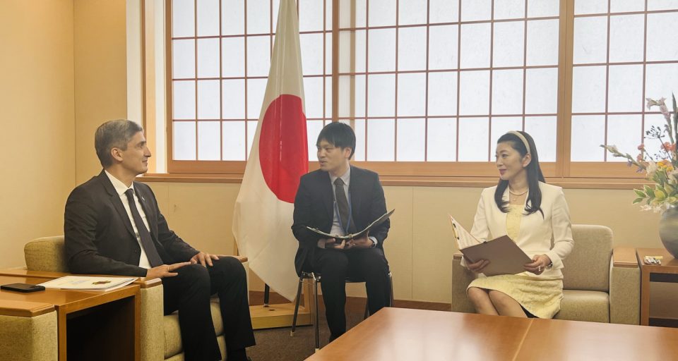 Ýaponiýanyň Daşary işler ministrliginiň binasynda Türkmenistanyň Ýaponiýadaky Ilçisi A.Baýramow bilen Ýaponiýanyň daşary işler ministriniň parlament işleri boýunça orunbasary Ýuumi Ýoşikawanyň arasynda duşuşyk geçirildi.